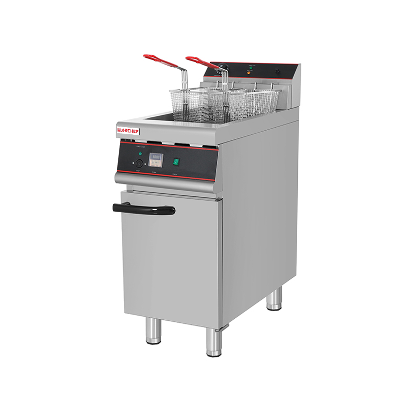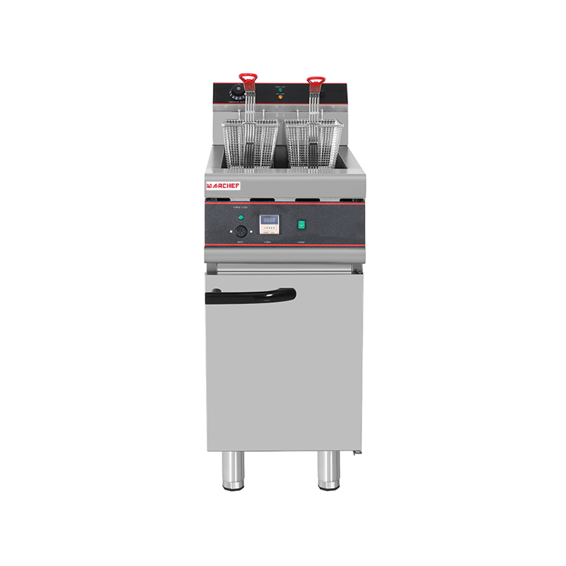 Power up your kitchen with the EF-26VC commercial deep fryer! Featuring 10KW heating power, 21L oil capacity, and precise 0-190℃ thermostat control. Built with premium 430 stainless steel for lasting durability.