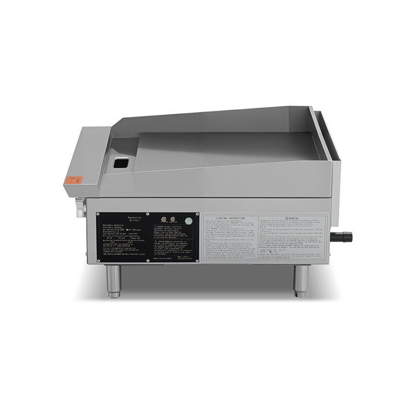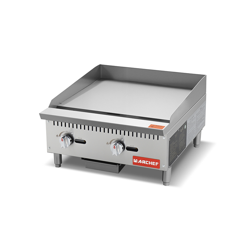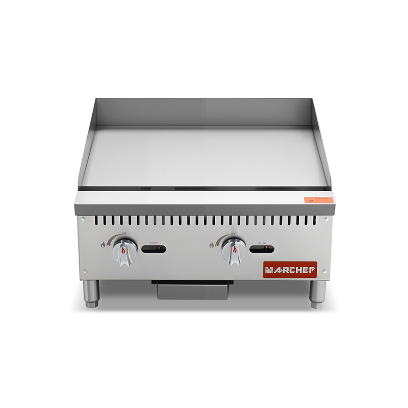 Power up with MGG24-MF 24″ gas griddle! Dual 30K BTU burners, 3/4″ steel plate, stainless steel. NG/LPG convertible, CSA certified. High-performance!