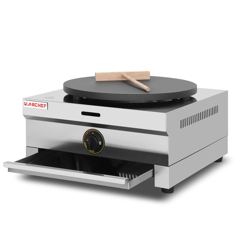 GC-1 commercial gas crepe maker features 2800Pa pressure & cast iron plate with Teflon coating. CE certified, stainless steel construction. Ideal for cafes & food trucks. Order now!