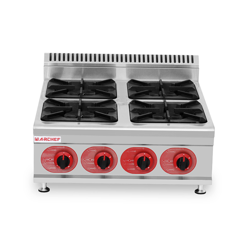 The GB-4T professional four-burner gas hob offers powerful flames and fast cooking. It features flameout protection, dual fuel compatibility (LPG/Natural Gas) and durable 1.0mm steel construction. Perfect for busy commercial kitchens.