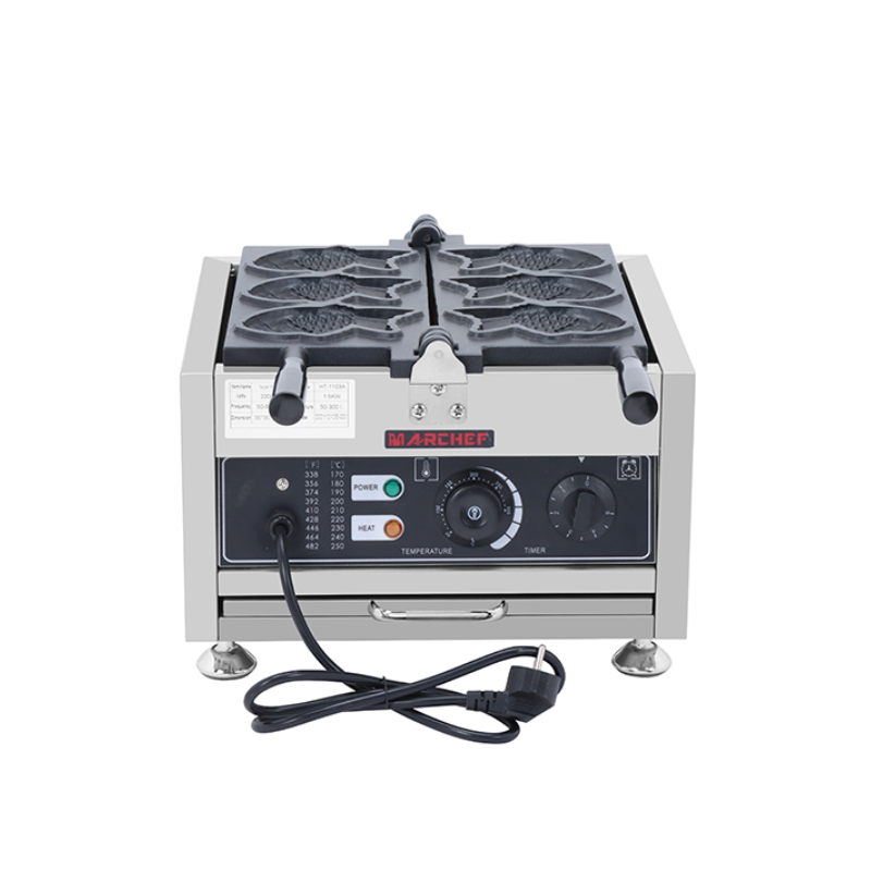 WF-1103A commercial waffle maker, 1500W high power, 3 minutes fast heating, fish-shaped mold, made by Tongqu! Double-sided cast aluminum baking tray, crispy on the outside and tender on the inside, CE/ROHS certified, commercial-grade durable design, a must-have for dessert shop breakfast carts.